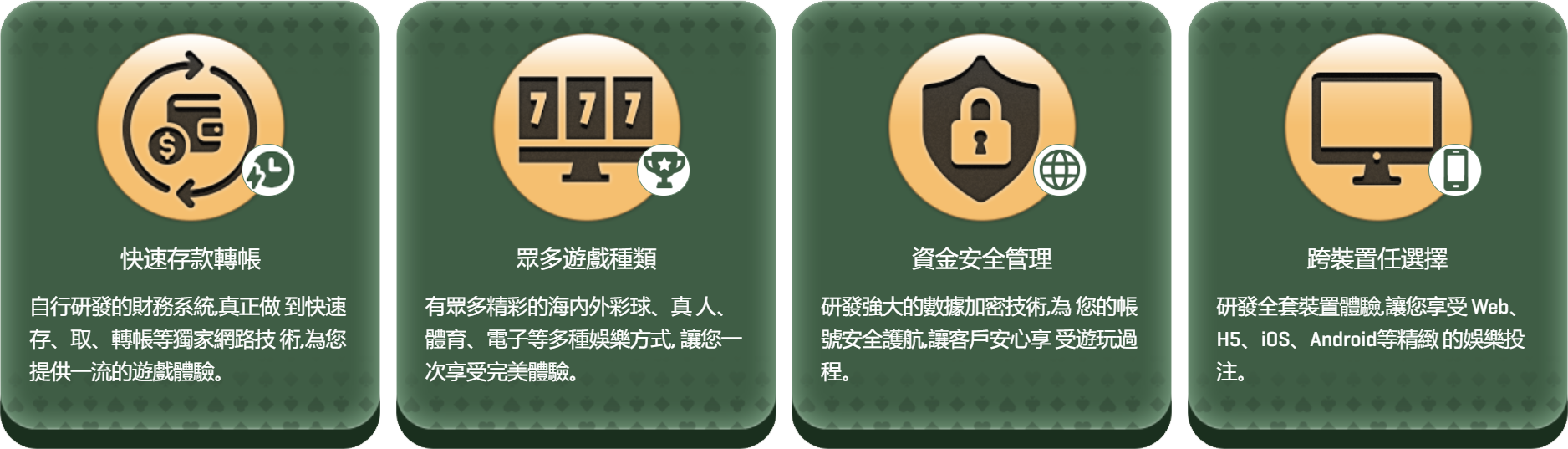 體育賽事、百家樂、老虎機